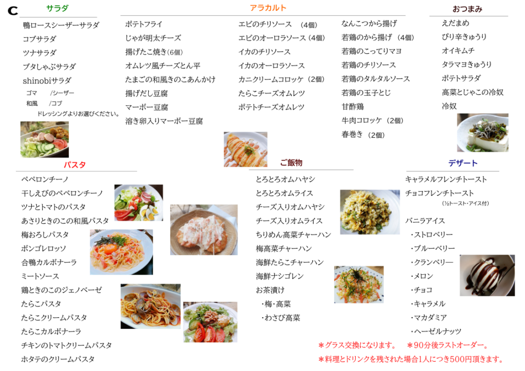 ・食べ+飲み放題 Cコース(料理数約70品、要予約)